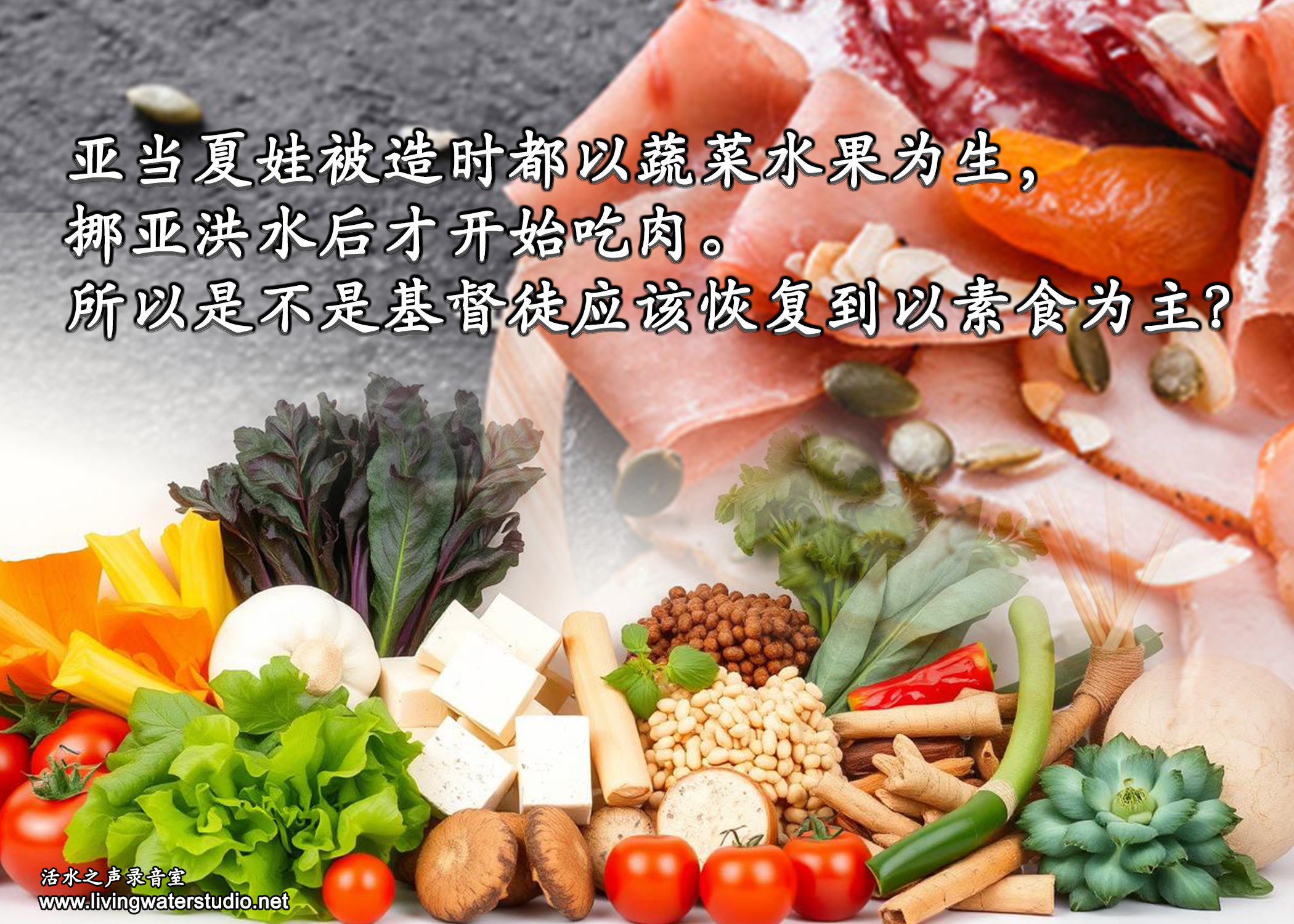 转载请注明:活水之声 » xiang051亚当夏娃被造时都以蔬菜水果为生,挪亚洪水后才开始吃肉.所以是不是基督徒应该恢复到以素食为主?