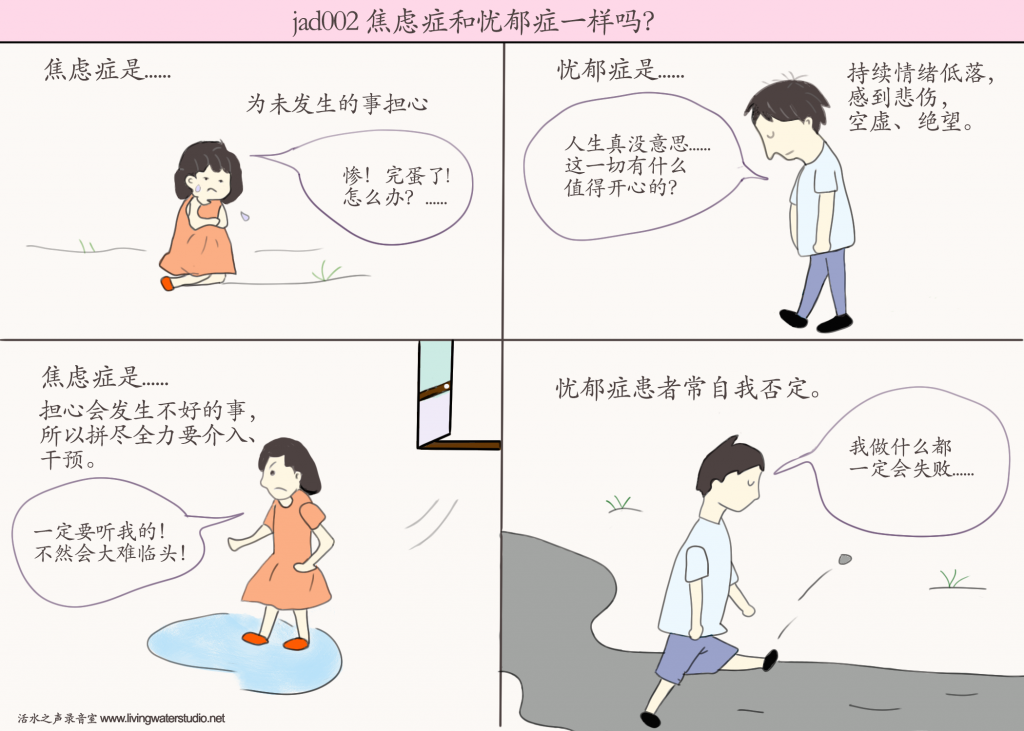 www.livingwaterstudio.netjad002 焦虑症和忧郁症一样吗?内容:林丽雯博士图片处理:凯蒂 转载请注明:活水之声 » jad002 焦虑症和忧郁症一样吗? 喜欢 (0)or分享 (0)