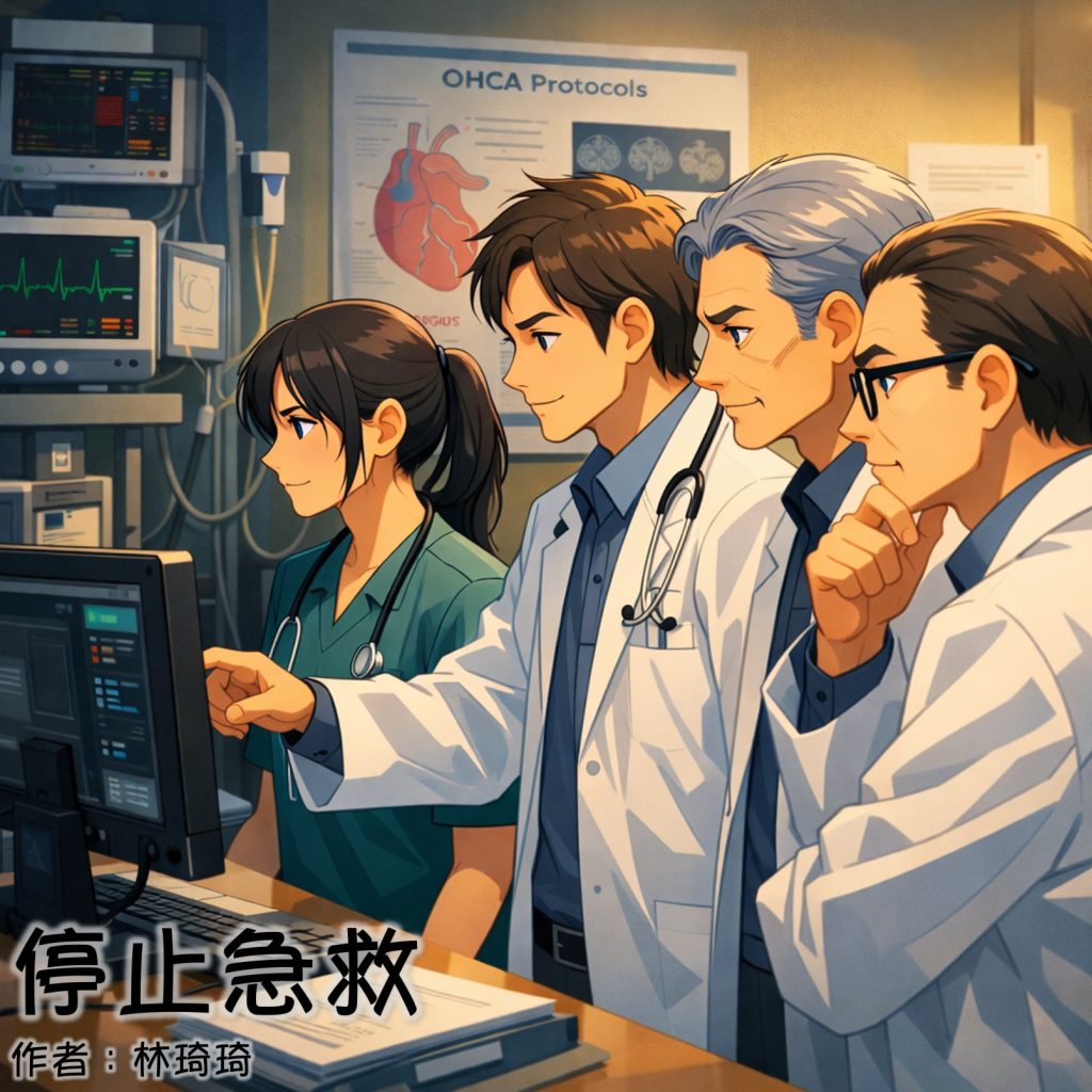 而那个第七个 OHCA 病人——那个四十多岁的男性——仍然留在我心里。不是作为一个流程的案例,而是作为一个提醒:有些按键按下去的时候,医学在场;伦理在场;而人的心,也在场。